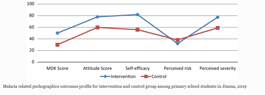 Reflecting on the findings, the researchers point to the integrated peer education networks and community-led SBCC approaches in the programme. Parents actively participated in the programme through what is locally called "geengoo qulqullina barnootaa", which means the circle for quality of education. The circles are made up of members representing the community, teachers, students, and school directors, who have the ultimate task of improving the quality of education. Engaging parents was one of the key components of the intervention aimed to enhance family supports for improved adoption and sustained malaria prevention in the community and schools. Consequently, the result showed higher mean scores in perceived family supports among the intervention group.