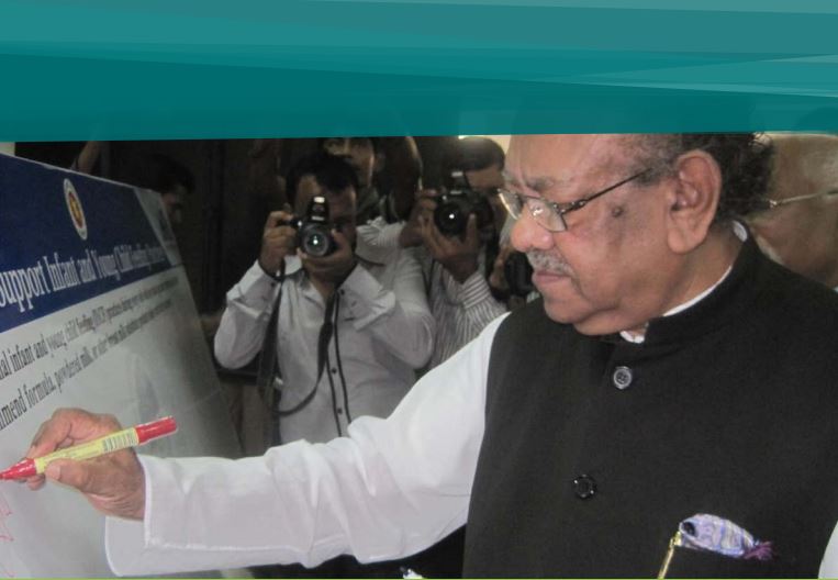 Alive and Thrive website, May 23 2017. Image caption: TThe Bangladesh Minister of Health signs a pledge to support IYCF.
