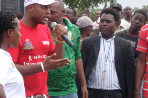 EVIH-T supported World AIDS Day planning to promote the campaign and introduced the communication components of the campaign: banners in the streets, posters at health institutions and community organisations, SMS (text messaging) and robocalls, and radio spots airing on national radio. These media shared the same message: Sida! Mwen pap pran. Mwen pap bay. (AIDS! I’m not catching it. I’m not passing it on.) The radio spots were designed to promote personal responsibility, for example: “My life is my own. I have to protect it. "[...] I’m not taking any risks so the AIDS virus won’t get inside..." or "That’s why I’m controlling my sexual activity. I’m not hooking up with a bunch of partners right and left." The spots also addressed stigma and support issues for people living with HIV, e.g.: "I’ve been living with the AIDS virus now for three years. When I found out, I thought my life was over. But, thanks to the support of friends, family and coworkers, and also thanks to the medications I always take every day, I’m beginning to love life again. [...] I’m not giving my wife AIDS or anyone else. With all my strength, with all my conviction, I say: AIDS! I’m not passing it on!"