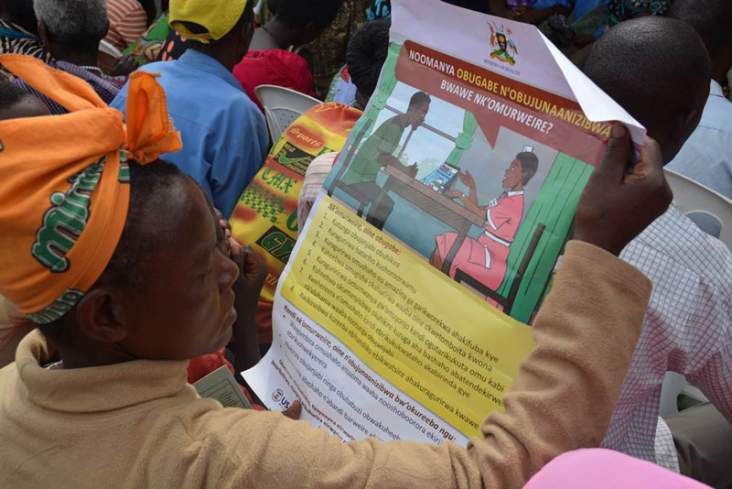 JAIDS Journal of Acquired Immune Deficiency Syndromes: 1 January 2017 - Volume 74 - Supplement 1 pp. S1–S73 doi: 10.1097/QAI.0000000000001211 - sent via email from HC3 to The Communication Initiative on December 9 2016; "Health Communication Leads to Better Outcomes for Those Receiving HIV Treatment", by Kim Martin, HC3, December 9 2016; USAID website, and "Health Communication and the HIV Continuum of Care", by Sten H. Vermund, Elizabeth C. Mallalieu, Lynn M. Van Lith, and Helen E. Struthers - all accessed on December 13 2016. Image caption/credit: "A woman reads the local language version of the Patient's Charter at a medical camp in Bushenyi, Uganda supported by the USAID-funded Advocacy for Better Health project." PATH