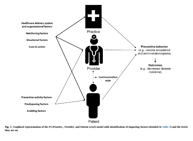 Health promotion and behavioural science theories provide frameworks for understanding human behaviour regarding preventive health care - in particular, why it is often underused. As part of prior and ongoing vaccine acceptance and uptake studies, this team has developed the P3 Model, addressing the practice-, provider-, and patient-level components involved in preventive care for vaccine promotion. In this article, they describe the development of the P3 Model, showing how it addresses gaps left by other health promotion and behaviour models and how it can be adopted and adapted for other preventive care activities. The applicability of the P3 Model is shown through 2 preventive care programme examples: immunisation and colorectal cancer screening.