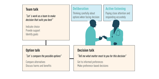 SDM interventions are designed to provide evidence-based, trustworthy information in accessible formats about a set of options so that patients can make decisions that align with their preferences. As Elwyn et al. (2017) explain, SDM recognises the role of the concerns, personal circumstances, and contexts of patients and their families in healthcare decisions. The SDM process may include the use of interventions such as clinician skills training and/or decision support tools. SDM interventions are designed to engage patients in medical decision making, with an eye toward patient activation.