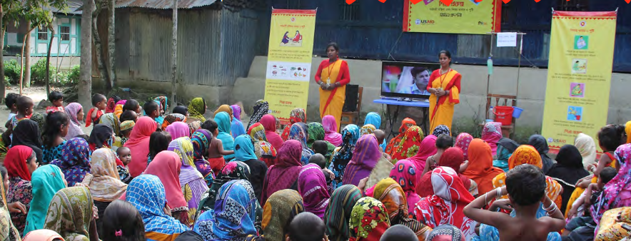 - Mass media and communication campaign: Seven advertisements, which address specific barriers to good IYCF practices, appear on national television channels. FHI 360 works in partnership with Asiatic Marketing and Communications Limited to design and execute media campaigns in 1,351 villages in project sub-districts that otherwise lack access to media.