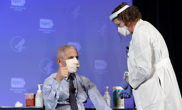 Vaccines 2022, 10, 1970. https://doi.org/10.3390/vaccines10111970. Image caption/credit: Dr. Anthony Fauci, National Institute of Allergy and Infectious Diseases (NIAID) Director, gives the thumbs up sign after receiving the Moderna COVID-19 vaccine at the HHS/NIH COVID-19 Vaccine Kick-Off event at NIH on 12/22/20. NIH Image Gallery via Flickr (Public Domain Mark 1.0)