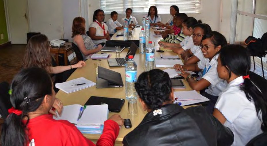In brief, the I-Kit includes explanatory text to provide users with an overview of SBCC and SRH, seven SRH SBCC programme design Essential Elements (EEs), practical worksheets, links to relevant external resources, and illustrative examples based on a fictional scenario. The goal of the PP programme was for HC3 to understand how organisations might use or adapt the I-Kit according to real project, country, and work circumstances. In Benin, HC3 worked with La Mutuelle de Jeunes Chrétiens pour le Développement (MJCD) and the Organisation pour le Service et la Vie (OSV-Jordan). In Madagascar, HC3 worked with Mpanazava Eto Madigasikara (MEM) and Projet Jeune Leader (PJL). In Kenya, HC3 partnered with Family Health Options Kenya (FHOK). Each PP selected relevant I-Kit sections to apply to its work, oriented its staff to the I-Kit, and received HC3 technical support throughout the process.