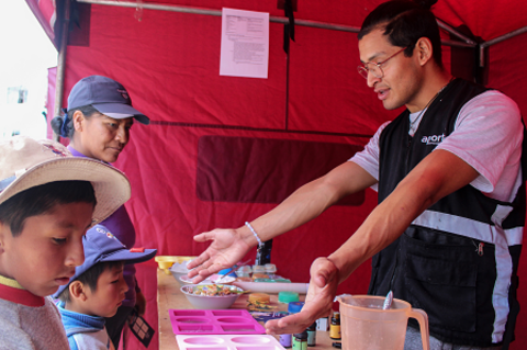 Through formative qualitative investigation, we identified a range of behavioral barriers to handwashing. The intervention package addressing these barriers centers on a family fair held in town plazas with skits, soap-making activities, and games. The fair aims to establish a new norm that not washing hands is socially unacceptable, highlight the many health and social consequences of not washing hands, and make handwashing feel like a more enjoyable experience. Activities trigger a sensation of disgust at the idea of unclean hands, a powerful tool for changing behavior. A special, handmade soap that participants take home from the event as well as reminder stickers posted in the home during community health worker visits keep handwashing top-of-mind. Public commitment badges and signs in health centers and local businesses reinforce the ubiquity of handwashing and draw a connection between handwashing and success in the community.