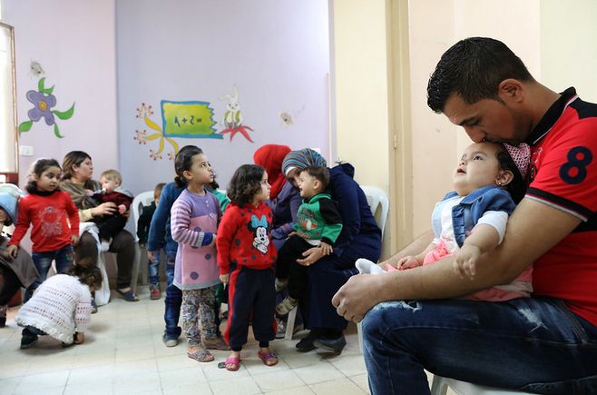 Journal of Travel Medicine, taad084, https://doi.org/10.1093/jtm/taad084. Image caption/credit: Syrian family refugees wait to vaccinate their children © Dominic Chavez/World Bank via Flickr (CC BY-NC-ND 2.0)