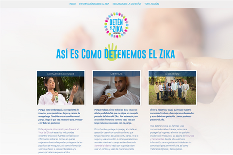 Carried out from July through September 2016 by RTI International, this research-based multimedia campaign aims at empowering pregnant women on how to prevent Zika virus transmission in Puerto Rico. The campaign, part of an effort with the Centers for Disease Control and Prevention (CDC), the CDC Foundation, the Puerto Rico Department of Health, and other partners, also focuses on empowering the social networks surrounding pregnant women - including partners, families, neighbours, and community members - to take action to #StopZika in their homes and communities. To that end, the campaign provides steps for pregnant women and communities to follow to protect themselves from Zika virus infection, mainly by taking actions to prevent mosquito bites and avoiding potential sexual transmission of the virus.