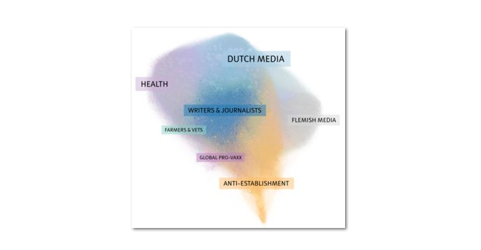 - Dutch media, comprising the country's main news platforms, broadcasting organisations, and public personae such as columnists, presenters, politicians, and musicians. Although this community spans 37.4% (n=45,177) of the network, just 0.3% of them were engaged in the vaccination debate, writing an average of 1.5 messages per users, the lowest of all communities.