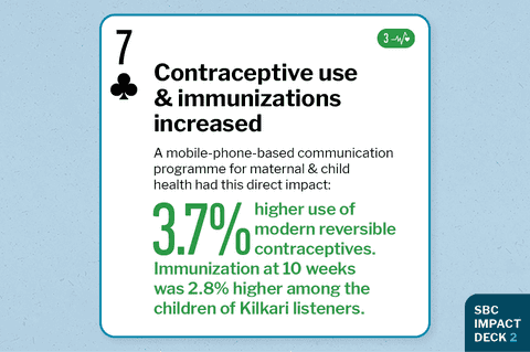 Strategy researched Mobile-phone-based communication programme for maternal and child health Impact achieved Country of study India Research methodology RCT Journal Journal paper title and link Excerpt from Abstract "Study findings provide the most conclusive evidence to date on the effectiveness of the largest beneficiary mobile communication programme in the world." |