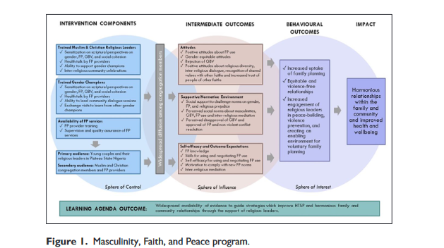 Programmes aiming to reduce intimate partner violence (IPV) increasingly seek to shift social norms, which are recognised as critical drivers of and/or barriers to behaviour change. In many African countries, including Nigeria, faith leaders are powerholders who hold considerable influence over the emergence or maintenance of a social norm; they can be change agents in support of shifting norms. This study assessed shifts in individual- and couple-level factors, social norms, and IPV from an 18-month community-based trial of the Masculinity, Faith, and Peace (MFP) programme, which was developed and implemented in Plateau state, Nigeria by Tearfund and evaluated by the Institute for Reproductive Health at Georgetown University, with funding from the John Templeton Foundation.