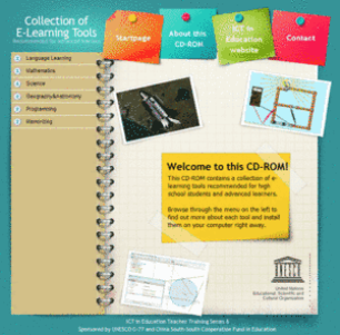 The United Nations Educational, Scientific and Cultural Organization (UNESCO) Bangkok ICT in Education Programme has created a CD-ROM which contains a collection of free e-learning tools suitable for advanced learners. Links to these online resources are also available for those with internet access. They are designed to be useful for instructed learning and self-learning using information and communication technology (ICT).