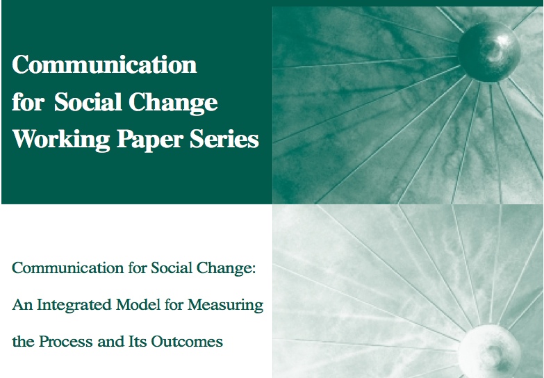 This working paper, Communication for Social Change: An Integrated Model for Measuring the Process and Its Outcomes, takes a big step forward in refining the practice of communication for social change. It is part of a larger strategy to spread communication for social-change thinking and ways of working broadly: to poor communities that have never thought about communication as a tool they can control for improving their lives; within aid and donor organisations that are more comfortable being in control than in sharing control; or within academic institutions that are preparing the next generation of professional communicators.