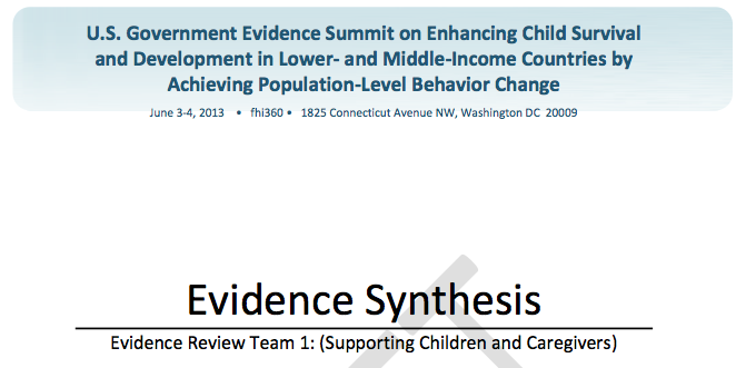 The analysis was based on a systematic review of this literature to assess the evidence around behaviour change interventions for women, families, and caregivers to improve child survival and child development. Each article was reviewed by a member of ERT1 to assess the empirical quality of the evaluation design. The team divided its themes into 7 categories: 1) healthy timing and spacing of pregnancy, 2) newborn health, 3) child development, 4) nutrition, 5) immunisation, 6) handwashing, and 7) malaria control.