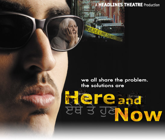 The Here and Now public "intervention" emerged from such a process - one involving community collaboration at its centre. Headlines Theatre staff began the process by meeting with community leaders to explore how to involve diverse groups of community members in the theatre-based project. In October 2005, organisers gathered a group of approximately 20 local participants in an effort to provide (paid) opportunities for creative, community-based dialogue. In recruiting participants, organisers worked to reach out to those who are living the issues under investigation. They focused at a very grassroots level by accessing women's and support groups, English as a second language (ESL) programmes, sectors of the community affected by violence, small neighbourhood gatherings, and the like - always in close collaboration with Indo-Canadian workers. Those who were selected engaged in games and exercises that were designed to help them investigate issues such as: Does the issue of street violence connect to the issues of violence in the family, schools, clubs, etc.? If it does, how? How is it that people get involved with violence? Why and how are issues of identity central, and how does gender play into the assertion of one's individuality, on the one hand, and membership in a group, on the other? Using the workshop as the material from which the performance grew, the cast, production team, and director created an artistic production for presentation to the public.