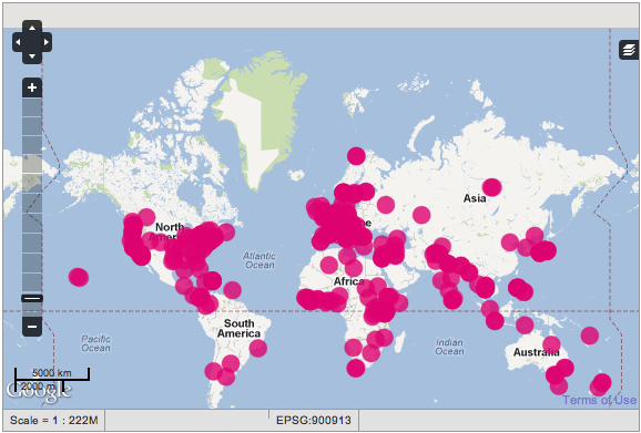 - Information for individual entries in a location can be retrieved through clicking on a dot in the map in the desired location;